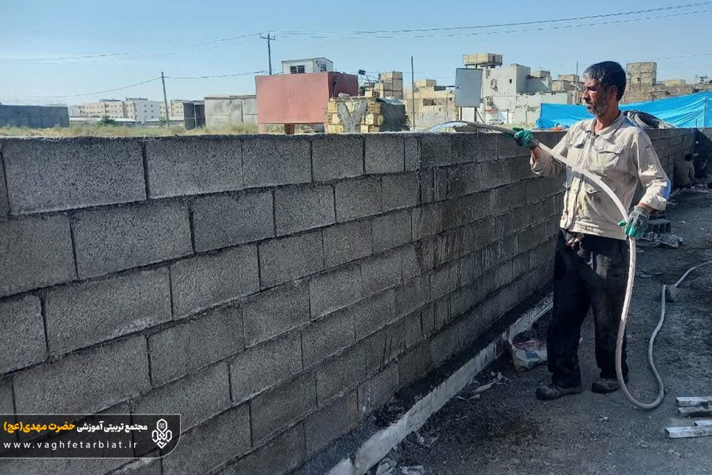 - عمل آوری و نگهداری ملات دیوارحیاط مدرسه